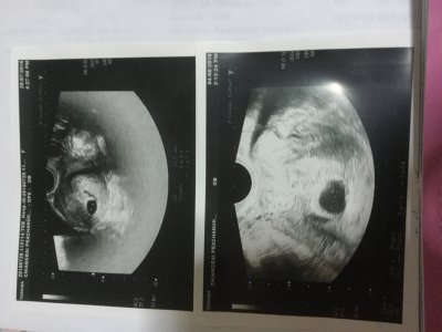 รูป ultrasound พวกนี้มันเล็กมากและไม่เห็นรายละเอียดอะไรเลยนะครับ จึงไม่สามารถลงความเห็นได้ แต่อายุครรภ์ที่คำนวณจากระดูครั้งสุดท้าย = 7 สัปดาห์ 5 วัน เมื่อ 27 กค แต่ ultrasound อ่าน (ไม่ทราบว่าใช้อะไรเป็นเกณฑ์ เช่น sac diameter หรืออะไร เพราะไม่มีข้อมูล) ว่าอายุครรถ์ 4 สัปดาห์ 4 วัน ซึ่งต่างกันมาก ก็อาจจะเป็นไปได้ 2 อย่างคือ คุณจำระดูผิด ถ้าจำได้ถูกต้องก็แสดงว่าผิดปกติ ถ้าจำผิดก็อาจจะเป็นได้ว่าเพิ่งมีการตั้งครรภ์ และอายุครรภ์น้อยมากจึงอาจจะยังไม่เห็นตัวเด็กและการเต้นของหัวใจทารก ultrasound อีกครั้งเห็นอ่านว่าอายุครรภ์มากขึ้น 1 สัปดาห์ แต่ไม่มีข้อมูลว่าอาศัยเกณฑ์อะไร ถ้าใช้แต่ขนาดถุงการตั้งครรภ์อย่างเดียวก็คงเชื่อถือไม่ได้ครับ ก็คงต้องมาตรวจใหม่แหละครับ ทำ ultrasound ผ่านทางช่องคลอดถึงจะเห็นได้ครับ เช่นว่า เห็นถุงไข่แดงไหม มีหัวใจเด็กให้เห็นไหม ซึ่งตอนนี้อายุครรภ์ก็น่าจะมากพอที่จะเห็นรายละเอียดได้บ้างแล้วครับ เอาแต่รูปนิ่งๆมาแบบมันจนใจจริงๆครับ เข้ามาตรวจดีกว่าครับ